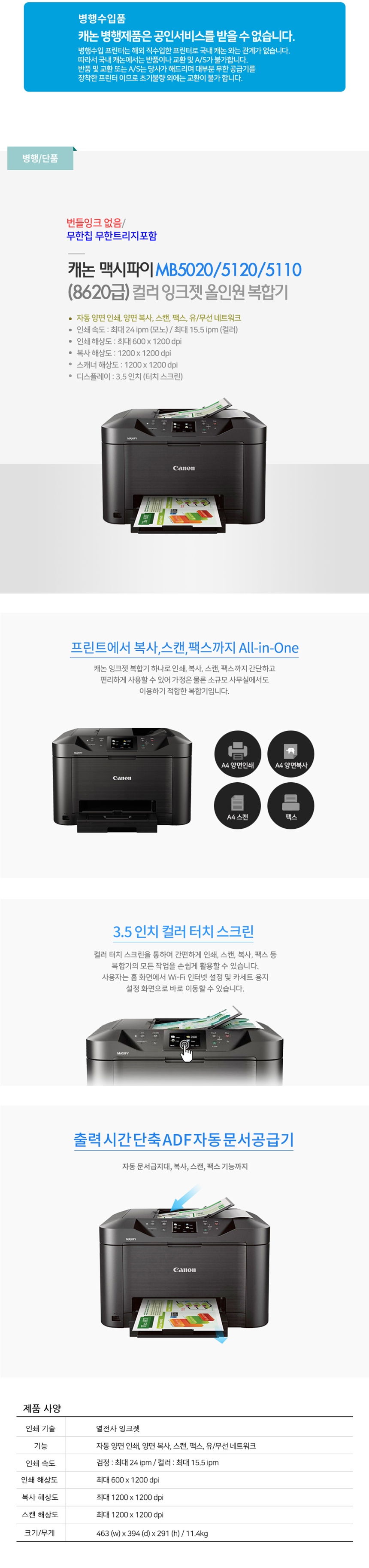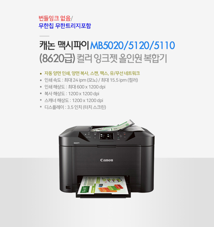 캐논 맥시파이 MB5110/5120 복합기 (양면스캔/양면복사/양면인쇄/팩스/무선)
