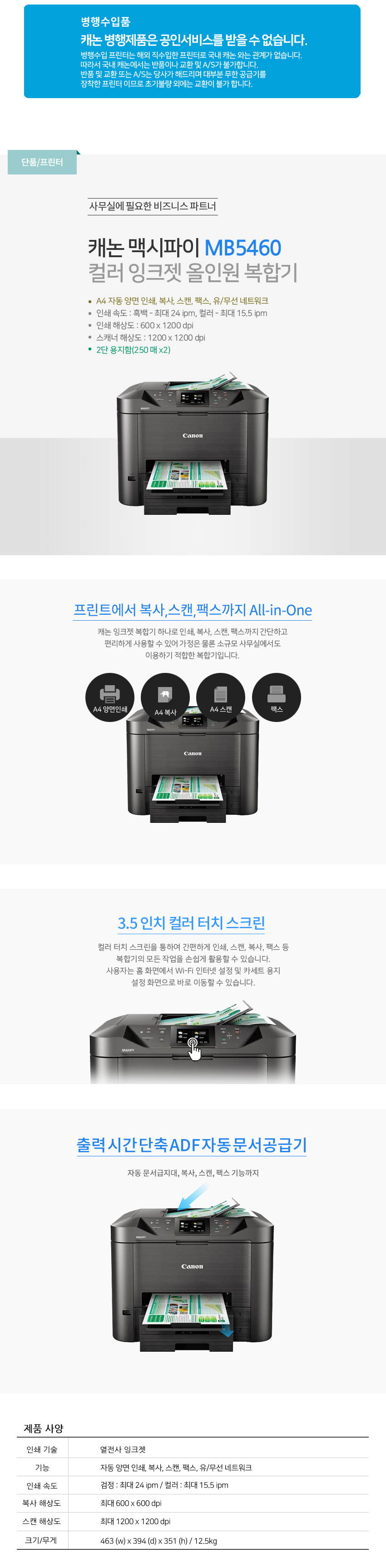 MB5460 캐논 맥시파이 컬러 잉크젯 올인원 복합기