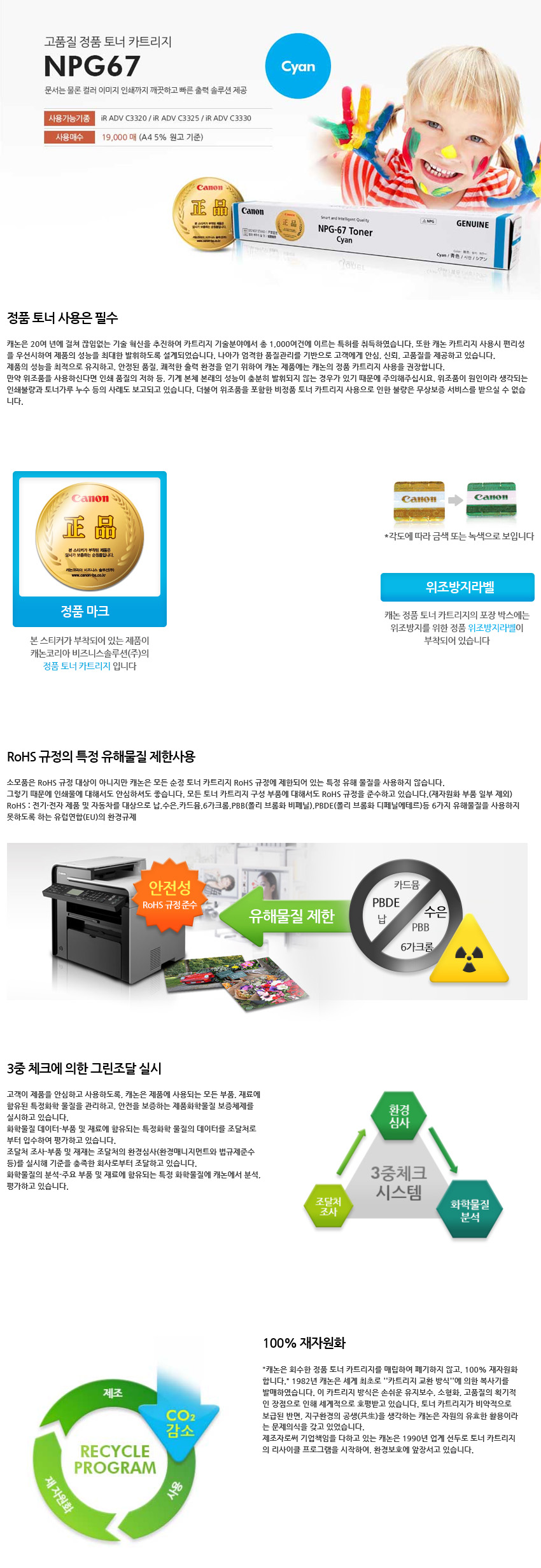 캐논 토너 NPG-67(Cyan)