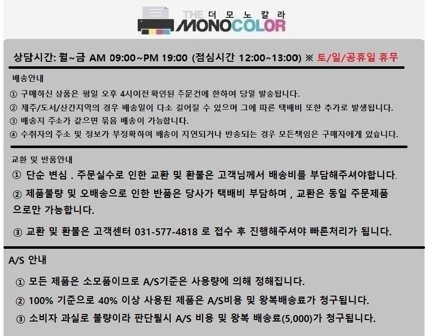 Biz License  376-04-01544      상호명 : 더 모노칼라(TMC)       대표자명 : 강승택        경기도 남양주시 와부읍 석실로 345       통신판매신고번호 : 2019-와부조안-0149호     대표번호 : 031-577-4818    호스팅제공자 : ()아임웹