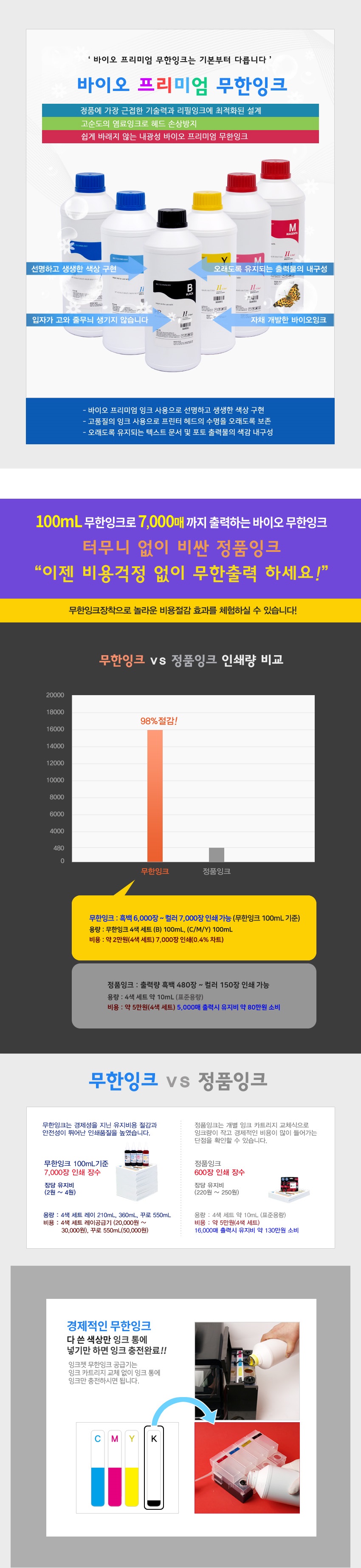 바이오 프리미엄 무한잉크 (HP950 933 952 972 970) 1L 벌크잉크 Magenta