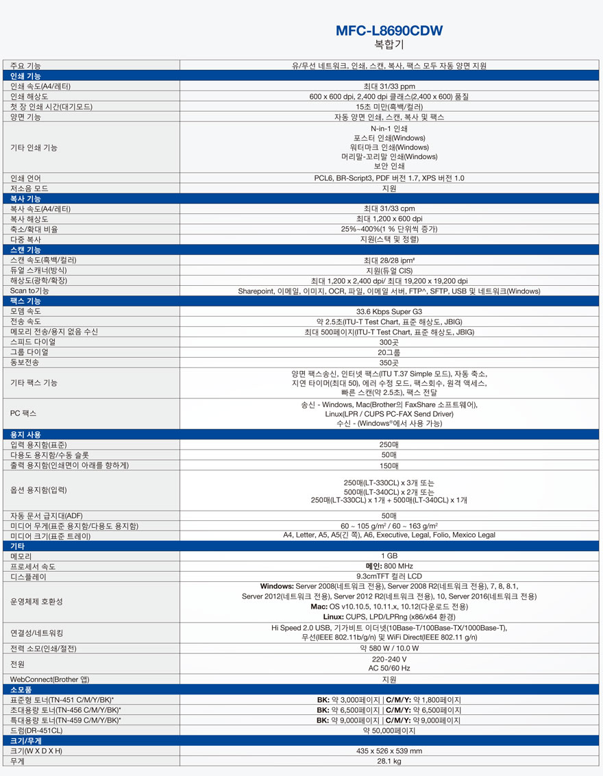 브라더 A4 컬러레이저복합기 MFC-L8690CDW